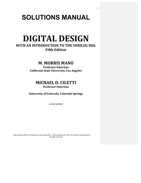Read Online Digital Design Mano Ciletti 5th Edition Solutions PDF online is a convenient and frugal way to read Digital Design Mano Ciletti 5th Edition Solutions you love right from the comfort of your own home. Yes, there sites where you can get PDF "for free" but the ones listed below are clean from viruses and completely legal to use.