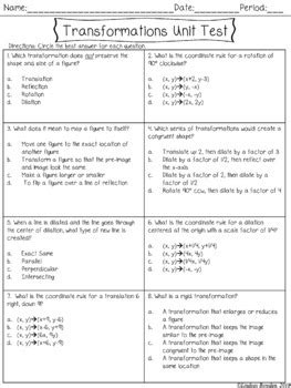 Read Transformations Unit Test With Answer Key Reader