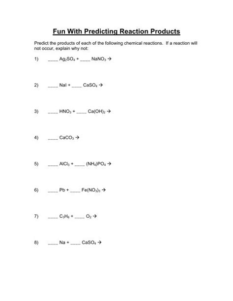 Read Online Fun With Predicting Reaction Products Worksheet Answers Kindle Editon